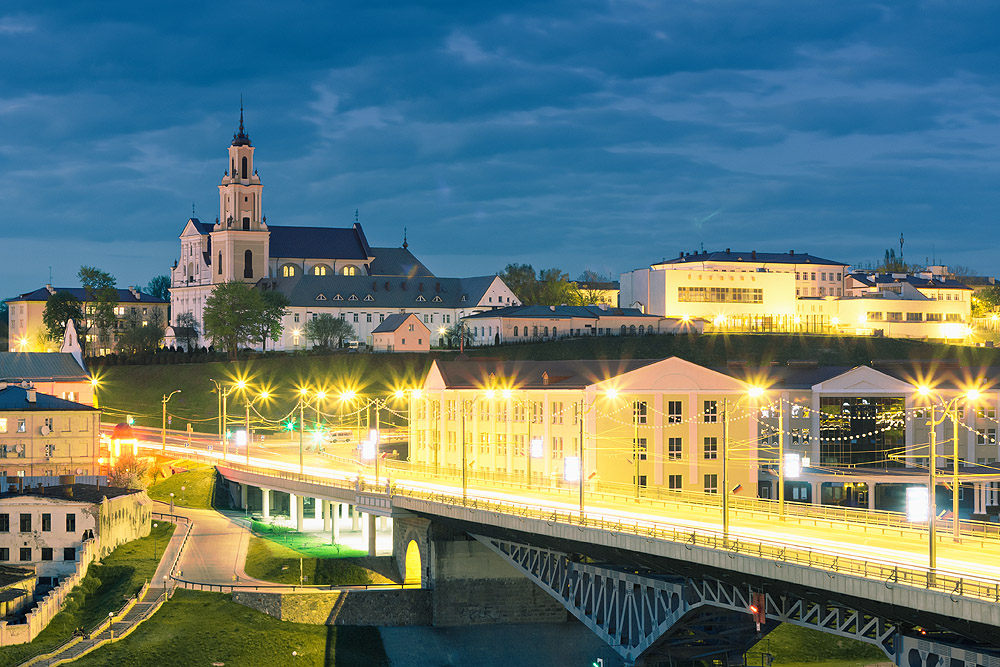 Королевский Гродно величественен и одновременно уютен. Шпили изысканных храмов, разноцветье старинных домов, причудливость изогнутых улочек, изящество ландшафтных композиций создают его неповторимый колорит. Город — памятник архитектуры и градостроительства!